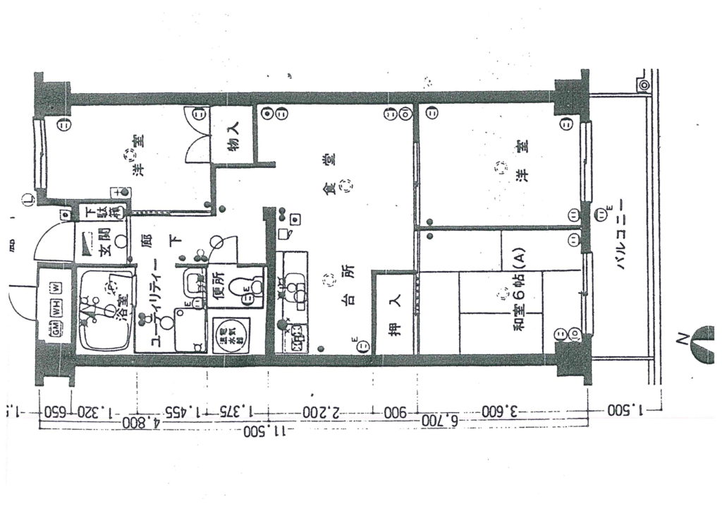 元々の間取り。真ん中の太い壁が撤去できない壁です